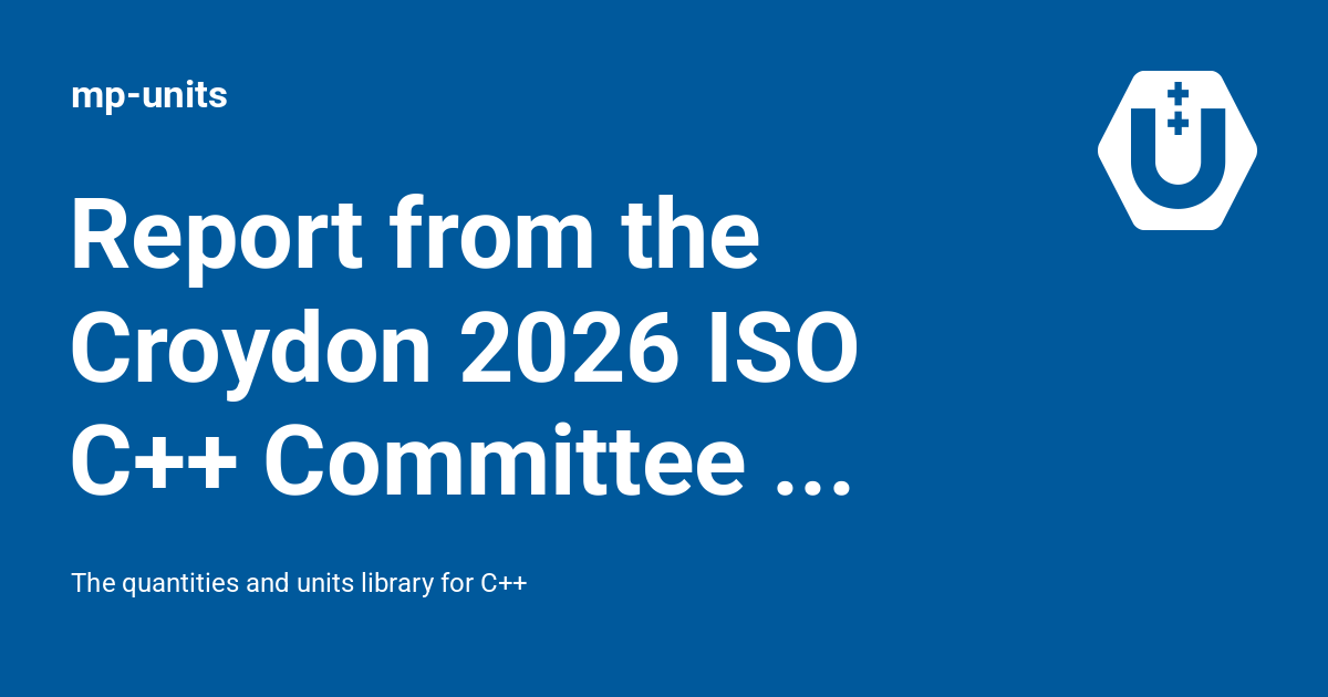 Report from the Croydon 2026 ISO C++ Committee meetingReport from the Croydon 2026 ISO C++ Committee meeting It has been 1.5 years since the last major update on the ISO C++ standardization progress here. It is not that I got lazy :wink:, but there was really not much to share. This time, things were different. We achieved a nearly unprecedented success — one probably not even expected by most, definitely not by me! 🎉 Keep reading to learn more...📝mp-unitsFriday, March 27, 2026